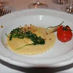 Οι πελάτες μπορούν να απολαύσουν γεύμα στο εστιατόριο En Canossa που σερβίρει πιάτα vegetarische.